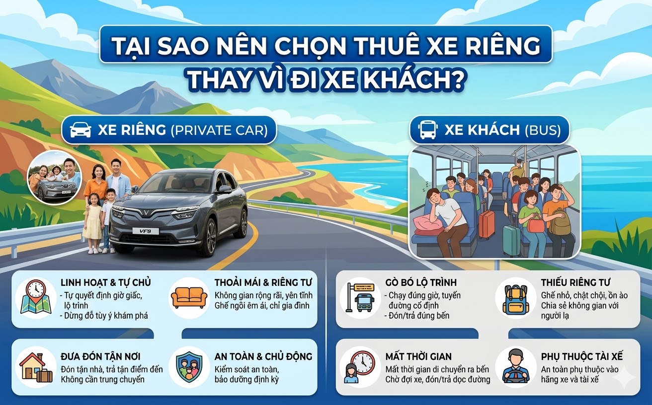 1. Tại sao nên chọn thuê xe riêng thay vì đi xe khách?